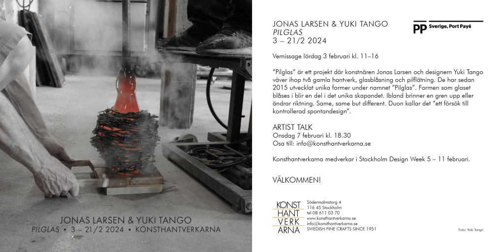 A new series of Pilglas vases has been exhibited at Tjörnedala Konsthall. On the 25th of August 15:00, Jonas Larsen and Yuki Tango talk about the project at the museum.